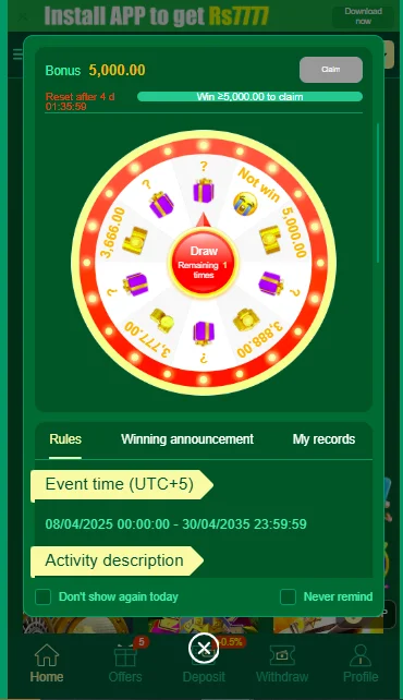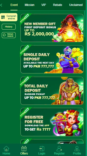 After completion of registration, some users want to deposit money for big wins, so you will find the deposit icon, click on it, and select your payment method, for example, Easy Paisa, Jazz Cash, or Bank Transfer. Select the amount that you want to deposit. The minimum deposit is low; you can start playing just by adding RS. 100. After that, you will get a notification for the amount approval. Approve it and enjoy the game.