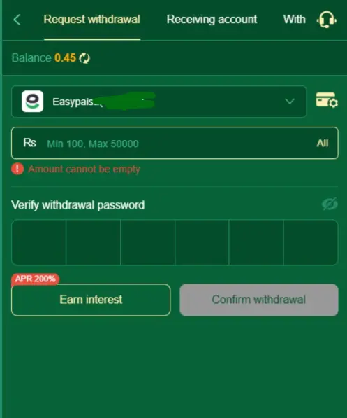 | Select your preferred payout option: JazzCash, EasyPaisaa, or Bank Transfer |